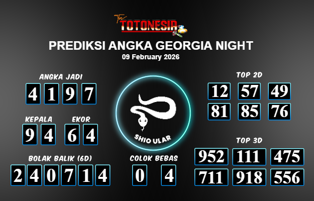 Prediksi GEORGIA NIGHT adalah perhitungan nomor togel unggulan dari agen suhu togel yang menyajikan angka prediksi paling akurat, sehingga memberikan banyak keuntungan saat bermain di pasar togel GEORGIA NIGHT . TotoNesia adalah prediksi dengan rasio kemenangan tertinggi di Indonesia. Sebagai penyedia togel yang dapat dipercaya, kami bertekad untuk memberikan ramalan togel yang handal dengan hadiah terbesarnya. Maka dari itu, jangan sampai terlewatkan prediksi bandar togel dengan hadiah terbanyak bet 100 dari pasar togel terbaik GEORGIA NIGHT Daftar sekarang juga di bandar.