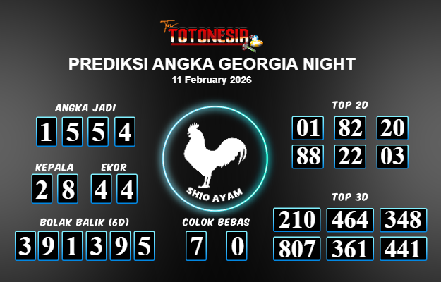 Toto Nesia : Bocoran Prediksi Togel GEORGIA NIGHT Tanggal 11 FEBUARI 2026