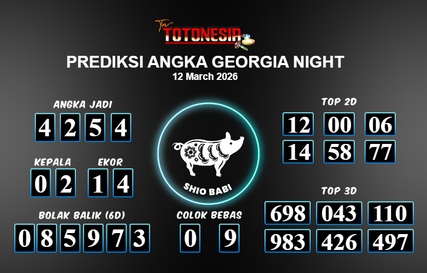Prediksi GEORGIA NIGHT adalah perhitungan nomor togel unggulan dari agen suhu togel yang menyajikan angka prediksi paling akurat, sehingga memberikan banyak keuntungan saat bermain di pasar togel GEORGIA NIGHT . TotoNesia adalah prediksi dengan rasio kemenangan tertinggi di Indonesia. Sebagai penyedia togel yang dapat dipercaya, kami bertekad untuk memberikan ramalan togel yang handal dengan hadiah terbesarnya. Maka dari itu, jangan sampai terlewatkan prediksi bandar togel dengan hadiah terbanyak bet 100 dari pasar togel terbaik GEORGIA NIGHT Daftar sekarang juga di bandar.