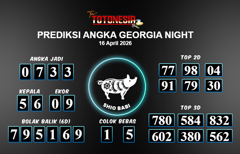 Toto Nesia : Bocoran Prediksi Togel GEORGIA NIGHT Tanggal 16 APRIL 2026