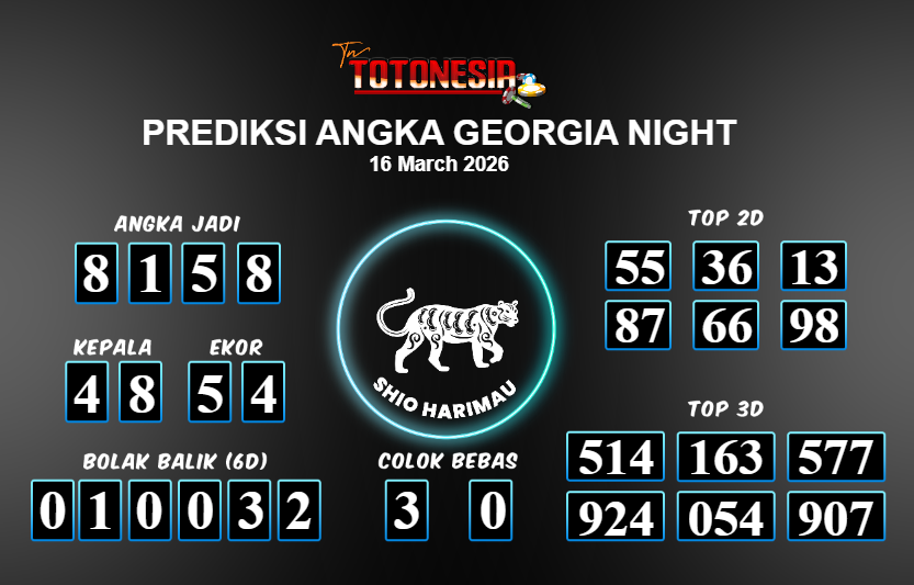 Toto Nesia : Bocoran Prediksi Togel GEORGIA NIGHT Tanggal 16 MARET 2026