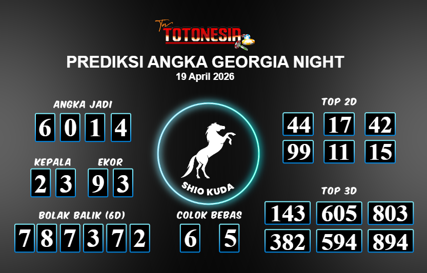 Toto Nesia : Bocoran Prediksi Togel GEORGIA NIGHT Tanggal 19 APRIL 2026