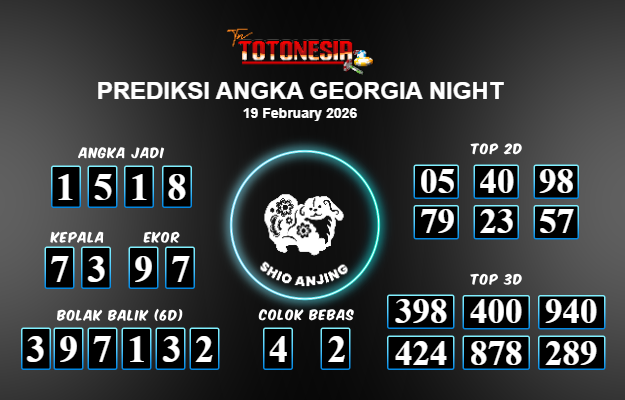 Prediksi GEORGIA NIGHT adalah perhitungan nomor togel unggulan dari agen suhu togel yang menyajikan angka prediksi paling akurat, sehingga memberikan banyak keuntungan saat bermain di pasar togel GEORGIA NIGHT . TotoNesia adalah prediksi dengan rasio kemenangan tertinggi di Indonesia. Sebagai penyedia togel yang dapat dipercaya, kami bertekad untuk memberikan ramalan togel yang handal dengan hadiah terbesarnya. Maka dari itu, jangan sampai terlewatkan prediksi bandar togel dengan hadiah terbanyak bet 100 dari pasar togel terbaik GEORGIA NIGHT Daftar sekarang juga di bandar.