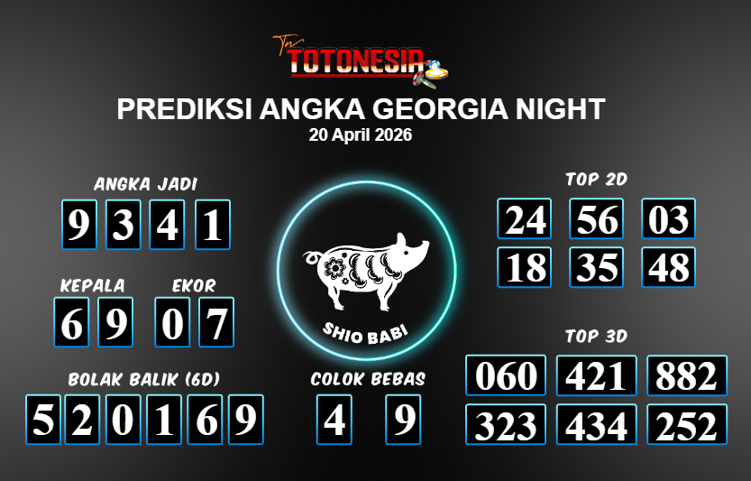 Prediksi GEORGIA NIGHT adalah perhitungan nomor togel unggulan dari agen suhu togel yang menyajikan angka prediksi paling akurat, sehingga memberikan banyak keuntungan saat bermain di pasar togel GEORGIA NIGHT . TotoNesia adalah prediksi dengan rasio kemenangan tertinggi di Indonesia. Sebagai penyedia togel yang dapat dipercaya, kami bertekad untuk memberikan ramalan togel yang handal dengan hadiah terbesarnya. Maka dari itu, jangan sampai terlewatkan prediksi bandar togel dengan hadiah terbanyak bet 100 dari pasar togel terbaik GEORGIA NIGHT Daftar sekarang juga di bandar.