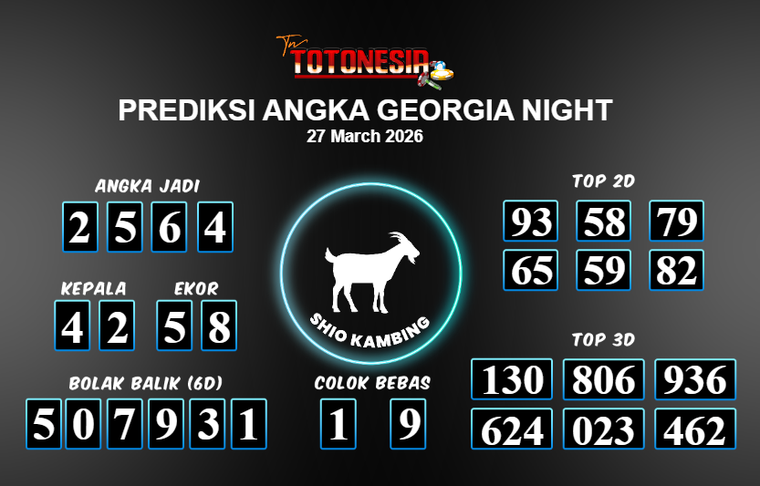 Prediksi GEORGIA NIGHT adalah perhitungan nomor togel unggulan dari agen suhu togel yang menyajikan angka prediksi paling akurat, sehingga memberikan banyak keuntungan saat bermain di pasar togel GEORGIA NIGHT . TotoNesia adalah prediksi dengan rasio kemenangan tertinggi di Indonesia. Sebagai penyedia togel yang dapat dipercaya, kami bertekad untuk memberikan ramalan togel yang handal dengan hadiah terbesarnya. Maka dari itu, jangan sampai terlewatkan prediksi bandar togel dengan hadiah terbanyak bet 100 dari pasar togel terbaik GEORGIA NIGHT Daftar sekarang juga di bandar.