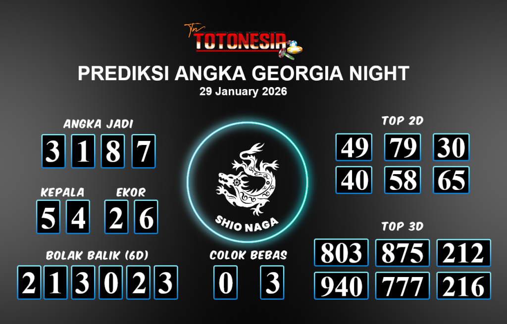 Prediksi GEORGIA NIGHT adalah perhitungan nomor togel unggulan dari agen suhu togel yang menyajikan angka prediksi paling akurat, sehingga memberikan banyak keuntungan saat bermain di pasar togel GEORGIA NIGHT. TotoNesia adalah prediksi dengan rasio kemenangan tertinggi di Indonesia. Sebagai penyedia togel yang dapat dipercaya, kami bertekad untuk memberikan ramalan togel yang handal dengan hadiah terbesarnya. Maka dari itu, jangan sampai terlewatkan prediksi bandar togel dengan hadiah terbanyak bet 100 dari pasar togel terbaik GEORGIA NIGHT daftar sekarang juga di bandar.
