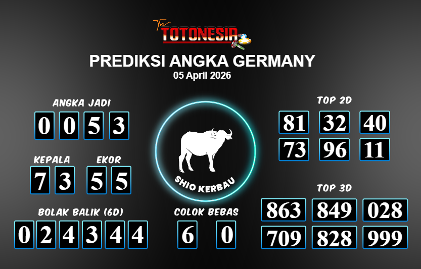 Toto Nesia : Bocoran Prediksi Togel GERMANY Tanggal 05 APRIL 2026