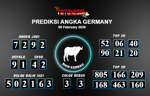 Toto Nesia : Bocoran Prediksi Togel GERMANY Tanggal 09 FEBUARI 2026