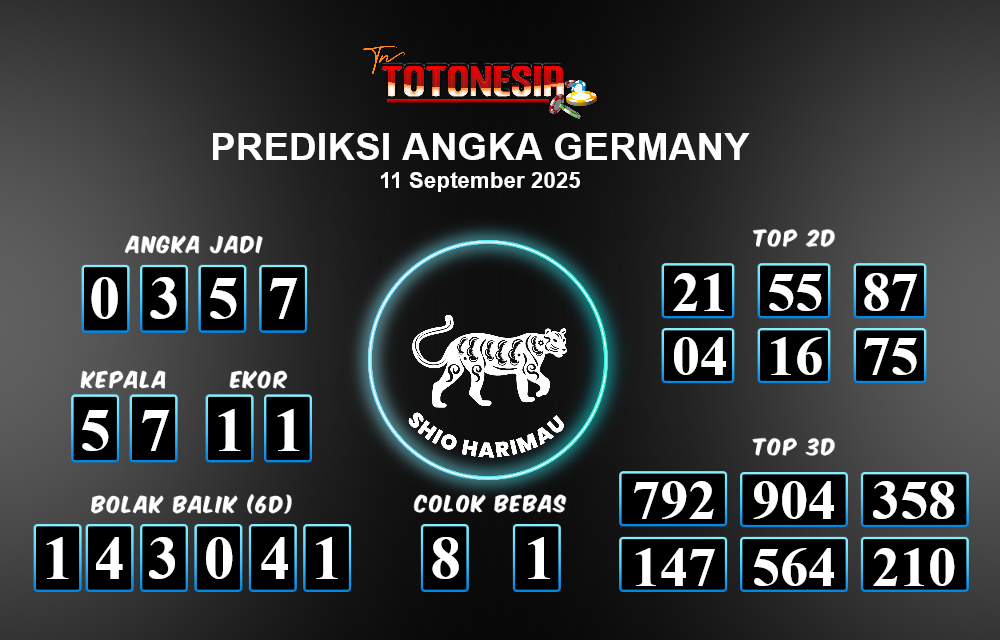 Toto Nesia : Bocoran Prediksi Togel GERMANY Tanggal 11 SEPTEMBER 2025