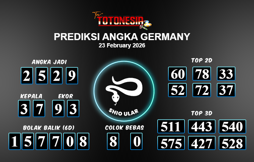 Toto Nesia : Bocoran Prediksi Togel GERMANY Tanggal 23 FEBUARI 2026