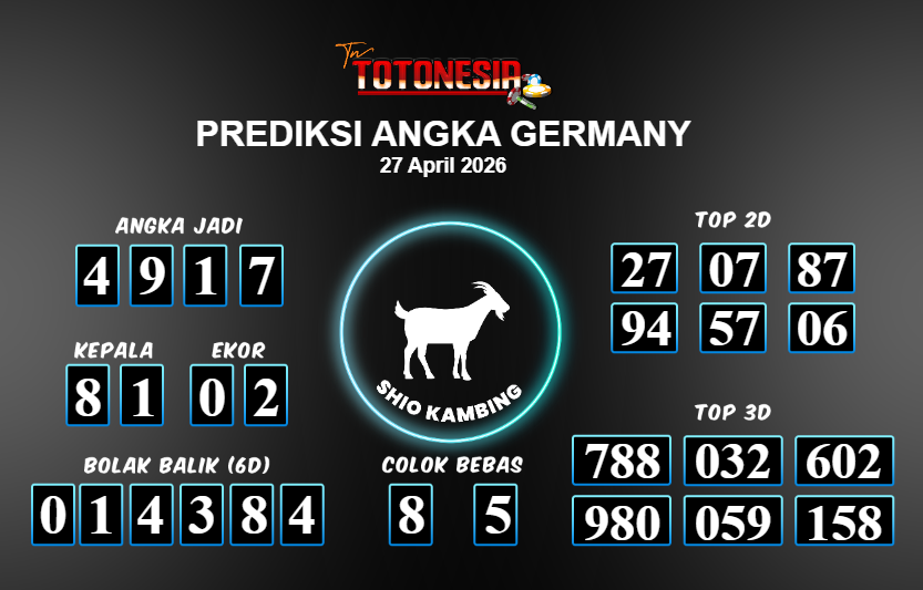 Toto Nesia : Bocoran Prediksi Togel GERMANY Tanggal 27 APRIL 2026