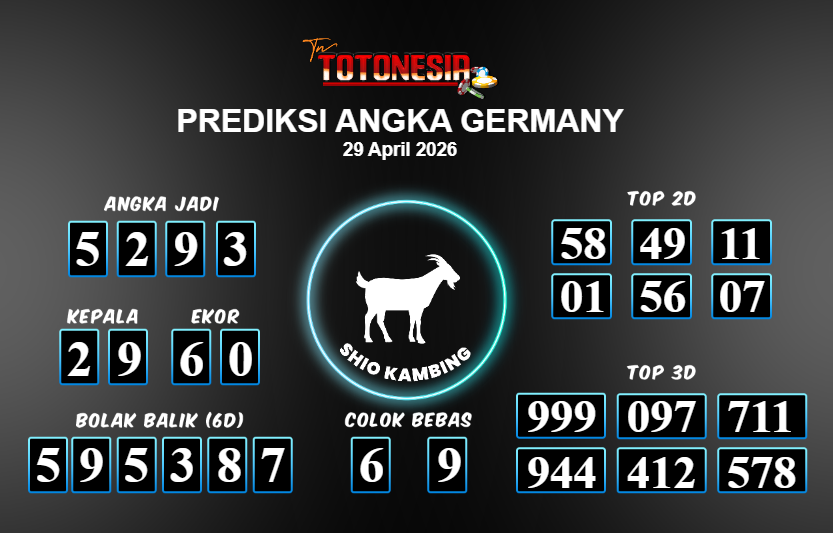 Toto Nesia : Bocoran Prediksi Togel GERMANY Tanggal 29 APRIL 2026