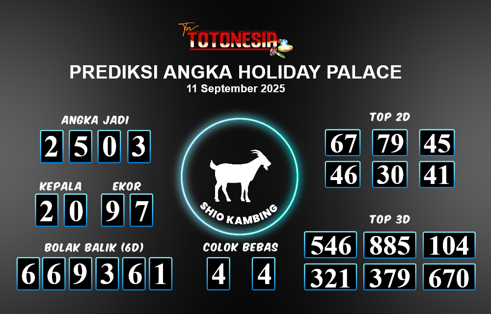 Toto Nesia : Bocoran Prediksi Togel HOLIDAY PALACE Tanggal 11 SEPTEMBER 2025