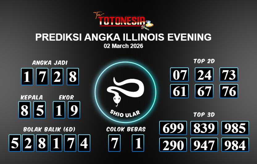 Toto Nesia : Bocoran Prediksi Togel ILLINOIS EVENING Tanggal 02 MARET 2026