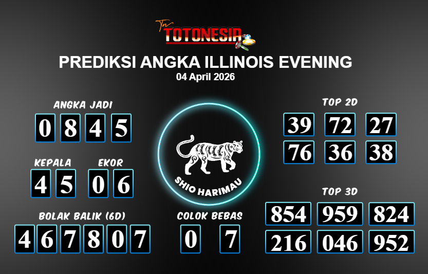 Prediksi ILLINOIS EVENING adalah perhitungan nomor togel unggulan dari agen suhu togel yang menyajikan angka prediksi paling akurat, sehingga memberikan banyak keuntungan saat bermain di pasar togel ILLINOIS EVENING . TotoNesia adalah prediksi dengan rasio kemenangan tertinggi di Indonesia. Sebagai penyedia togel yang dapat dipercaya, kami bertekad untuk memberikan ramalan togel yang handal dengan hadiah terbesarnya. Maka dari itu, jangan sampai terlewatkan prediksi bandar togel dengan hadiah terbanyak bet 100 dari pasar togel terbaik ILLINOIS EVENING Daftar sekarang juga di bandar.