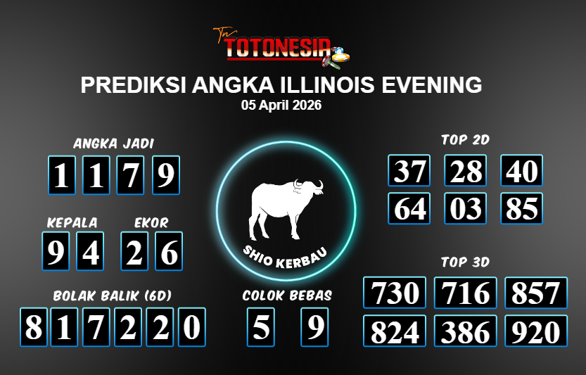 Toto Nesia : Bocoran Prediksi Togel ILLINOIS EVENING Tanggal 05 APRIL 2026