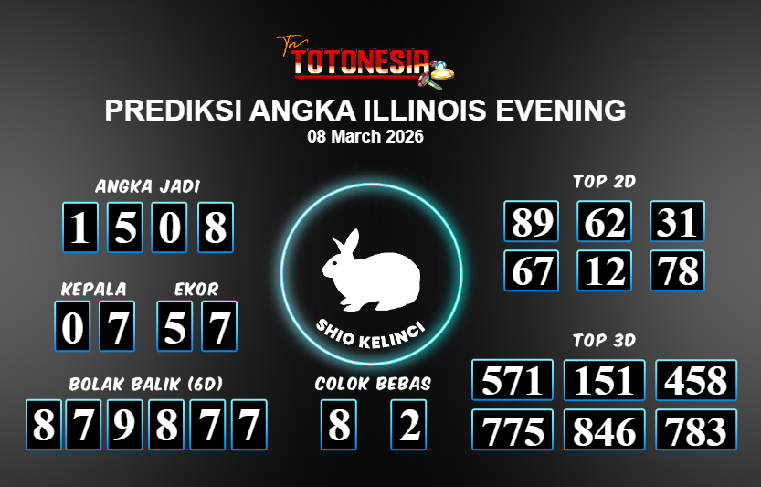 Prediksi ILLINOIS EVENING adalah perhitungan nomor togel unggulan dari agen suhu togel yang menyajikan angka prediksi paling akurat, sehingga memberikan banyak keuntungan saat bermain di pasar togel ILLINOIS EVENING . TotoNesia adalah prediksi dengan rasio kemenangan tertinggi di Indonesia. Sebagai penyedia togel yang dapat dipercaya, kami bertekad untuk memberikan ramalan togel yang handal dengan hadiah terbesarnya. Maka dari itu, jangan sampai terlewatkan prediksi bandar togel dengan hadiah terbanyak bet 100 dari pasar togel terbaik ILLINOIS EVENING Daftar sekarang juga di bandar.