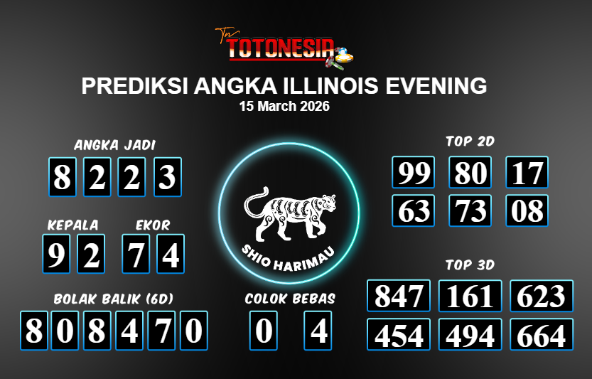 Toto Nesia : Bocoran Prediksi Togel ILLINOIS EVENING Tanggal 15 MARET 2026