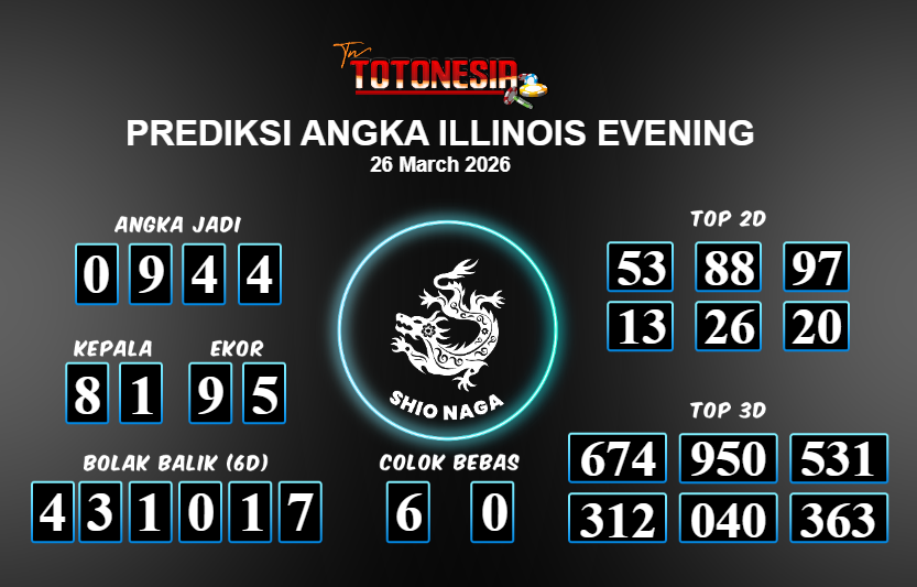 Prediksi ILLINOIS EVENING adalah perhitungan nomor togel unggulan dari agen suhu togel yang menyajikan angka prediksi paling akurat, sehingga memberikan banyak keuntungan saat bermain di pasar togel ILLINOIS EVENING . TotoNesia adalah prediksi dengan rasio kemenangan tertinggi di Indonesia. Sebagai penyedia togel yang dapat dipercaya, kami bertekad untuk memberikan ramalan togel yang handal dengan hadiah terbesarnya. Maka dari itu, jangan sampai terlewatkan prediksi bandar togel dengan hadiah terbanyak bet 100 dari pasar togel terbaik ILLINOIS EVENING Daftar sekarang juga di bandar.