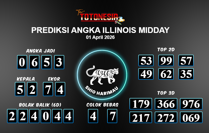 Prediksi ILLINOIS MIDDAY adalah perhitungan nomor togel unggulan dari agen suhu togel yang menyajikan angka prediksi paling akurat, sehingga memberikan banyak keuntungan saat bermain di pasar togel ILLINOIS MIDDAY . TotoNesia adalah prediksi dengan rasio kemenangan tertinggi di Indonesia. Sebagai penyedia togel yang dapat dipercaya, kami bertekad untuk memberikan ramalan togel yang handal dengan hadiah terbesarnya. Maka dari itu, jangan sampai terlewatkan prediksi bandar togel dengan hadiah terbanyak bet 100 dari pasar togel terbaik ILLINOIS MIDDAY Daftar sekarang juga di bandar.