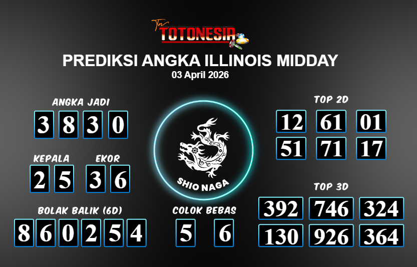 Prediksi ILLINOIS MIDDAY adalah perhitungan nomor togel unggulan dari agen suhu togel yang menyajikan angka prediksi paling akurat, sehingga memberikan banyak keuntungan saat bermain di pasar togel ILLINOIS MIDDAY . TotoNesia adalah prediksi dengan rasio kemenangan tertinggi di Indonesia. Sebagai penyedia togel yang dapat dipercaya, kami bertekad untuk memberikan ramalan togel yang handal dengan hadiah terbesarnya. Maka dari itu, jangan sampai terlewatkan prediksi bandar togel dengan hadiah terbanyak bet 100 dari pasar togel terbaik ILLINOIS MIDDAY Daftar sekarang juga di bandar.