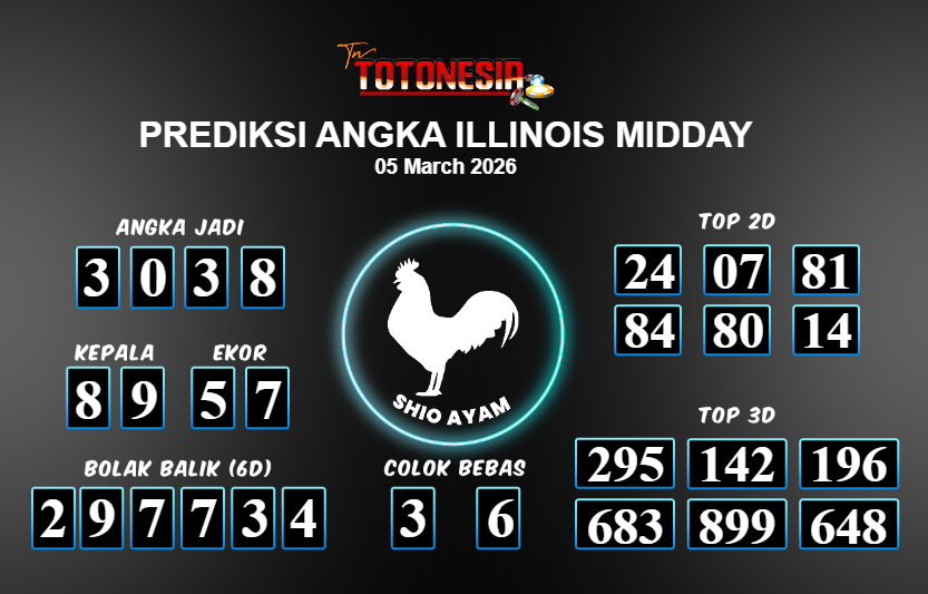 Prediksi ILLINOIS MIDDAY adalah perhitungan nomor togel unggulan dari agen suhu togel yang menyajikan angka prediksi paling akurat, sehingga memberikan banyak keuntungan saat bermain di pasar togel ILLINOIS MIDDAY . TotoNesia adalah prediksi dengan rasio kemenangan tertinggi di Indonesia. Sebagai penyedia togel yang dapat dipercaya, kami bertekad untuk memberikan ramalan togel yang handal dengan hadiah terbesarnya. Maka dari itu, jangan sampai terlewatkan prediksi bandar togel dengan hadiah terbanyak bet 100 dari pasar togel terbaik ILLINOIS MIDDAY Daftar sekarang juga di bandar.