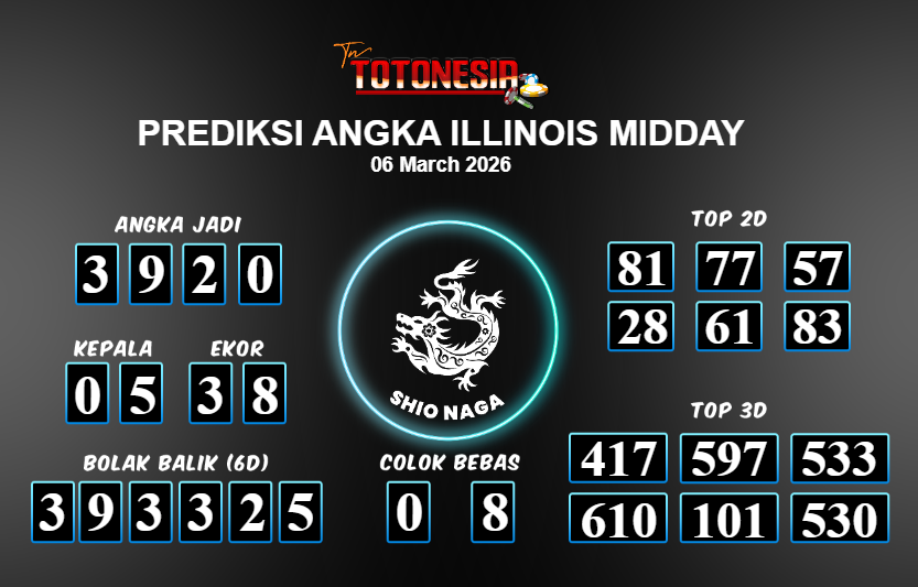 Prediksi ILLINOIS MIDDAY adalah perhitungan nomor togel unggulan dari agen suhu togel yang menyajikan angka prediksi paling akurat, sehingga memberikan banyak keuntungan saat bermain di pasar togel ILLINOIS MIDDAY . TotoNesia adalah prediksi dengan rasio kemenangan tertinggi di Indonesia. Sebagai penyedia togel yang dapat dipercaya, kami bertekad untuk memberikan ramalan togel yang handal dengan hadiah terbesarnya. Maka dari itu, jangan sampai terlewatkan prediksi bandar togel dengan hadiah terbanyak bet 100 dari pasar togel terbaik ILLINOIS MIDDAY Daftar sekarang juga di bandar.