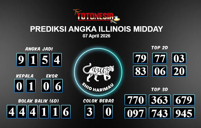 Prediksi ILLINOIS MIDDAY adalah perhitungan nomor togel unggulan dari agen suhu togel yang menyajikan angka prediksi paling akurat, sehingga memberikan banyak keuntungan saat bermain di pasar togel ILLINOIS MIDDAY . TotoNesia adalah prediksi dengan rasio kemenangan tertinggi di Indonesia. Sebagai penyedia togel yang dapat dipercaya, kami bertekad untuk memberikan ramalan togel yang handal dengan hadiah terbesarnya. Maka dari itu, jangan sampai terlewatkan prediksi bandar togel dengan hadiah terbanyak bet 100 dari pasar togel terbaik ILLINOIS MIDDAY Daftar sekarang juga di bandar.