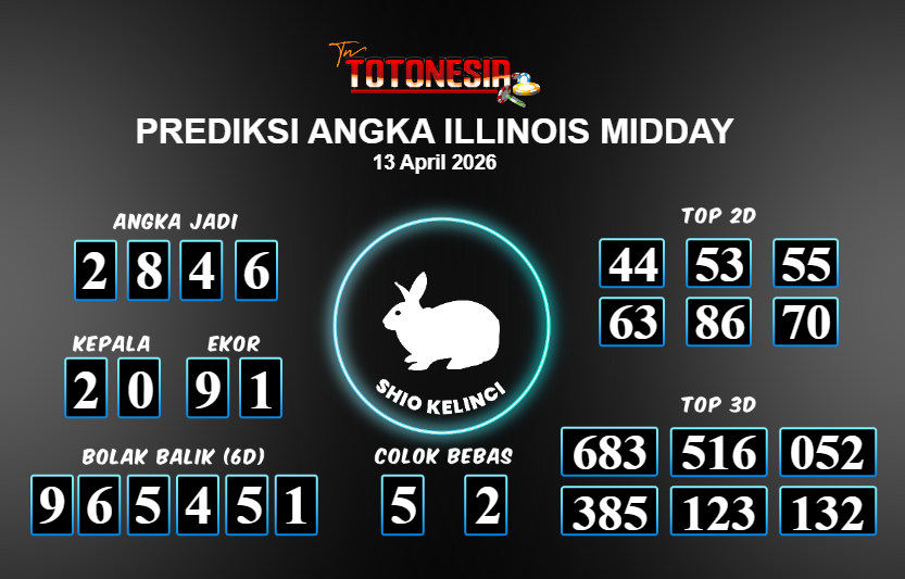 Prediksi ILLINOIS MIDDAY adalah perhitungan nomor togel unggulan dari agen suhu togel yang menyajikan angka prediksi paling akurat, sehingga memberikan banyak keuntungan saat bermain di pasar togel ILLINOIS MIDDAY. TotoNesia adalah prediksi dengan rasio kemenangan tertinggi di Indonesia. Sebagai penyedia togel yang dapat dipercaya, kami bertekad untuk memberikan ramalan togel yang handal dengan hadiah terbesarnya. Maka dari itu, jangan sampai terlewatkan prediksi bandar togel dengan hadiah terbanyak bet 100 dari pasar togel terbaik ILLINOIS MIDDAY Daftar sekarang juga di bandar.
