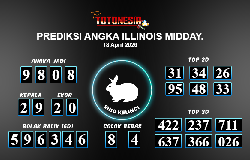 Toto Nesia : Bocoran Prediksi Togel ILLINOIS MIDDAY Tanggal 18 APRIL 2026