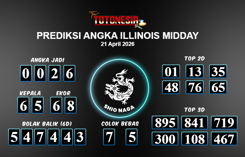 Prediksi ILLINOIS MIDDAY adalah perhitungan nomor togel unggulan dari agen suhu togel yang menyajikan angka prediksi paling akurat, sehingga memberikan banyak keuntungan saat bermain di pasar togel ILLINOIS MIDDAY . TotoNesia adalah prediksi dengan rasio kemenangan tertinggi di Indonesia. Sebagai penyedia togel yang dapat dipercaya, kami bertekad untuk memberikan ramalan togel yang handal dengan hadiah terbesarnya. Maka dari itu, jangan sampai terlewatkan prediksi bandar togel dengan hadiah terbanyak bet 100 dari pasar togel terbaik ILLINOIS MIDDAY Daftar sekarang juga di bandar.