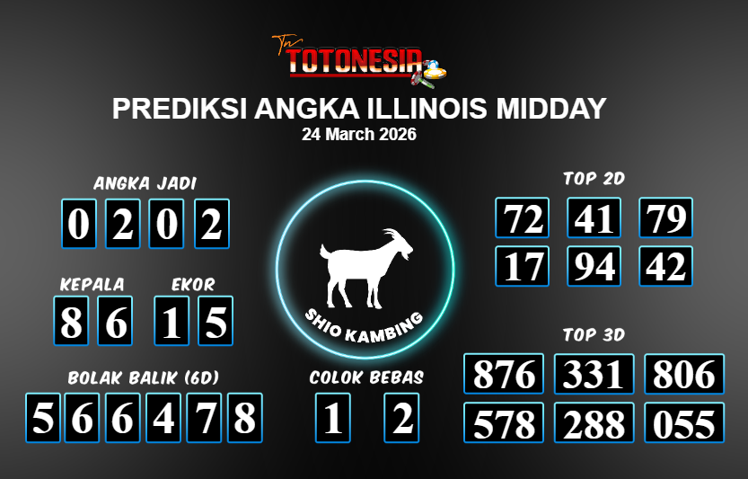 Prediksi ILLINOIS MIDDAY adalah perhitungan nomor togel unggulan dari agen suhu togel yang menyajikan angka prediksi paling akurat, sehingga memberikan banyak keuntungan saat bermain di pasar togel ILLINOIS MIDDAY . TotoNesia adalah prediksi dengan rasio kemenangan tertinggi di Indonesia. Sebagai penyedia togel yang dapat dipercaya, kami bertekad untuk memberikan ramalan togel yang handal dengan hadiah terbesarnya. Maka dari itu, jangan sampai terlewatkan prediksi bandar togel dengan hadiah terbanyak bet 100 dari pasar togel terbaik ILLINOIS MIDDAY Daftar sekarang juga di bandar.