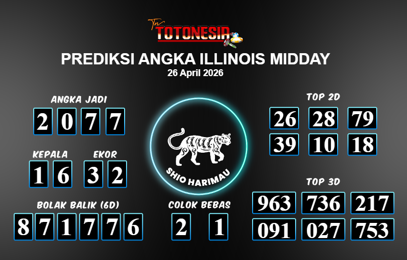 Toto Nesia : Bocoran Prediksi Togel ILLINOIS MIDDAY Tanggal 26 APRIL 2026
