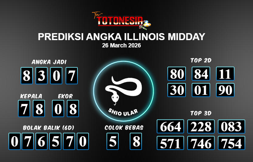 Prediksi ILLINOIS MIDDAY adalah perhitungan nomor togel unggulan dari agen suhu togel yang menyajikan angka prediksi paling akurat, sehingga memberikan banyak keuntungan saat bermain di pasar togel ILLINOIS MIDDAY . TotoNesia adalah prediksi dengan rasio kemenangan tertinggi di Indonesia. Sebagai penyedia togel yang dapat dipercaya, kami bertekad untuk memberikan ramalan togel yang handal dengan hadiah terbesarnya. Maka dari itu, jangan sampai terlewatkan prediksi bandar togel dengan hadiah terbanyak bet 100 dari pasar togel terbaik ILLINOIS MIDDAY Daftar sekarang juga di bandar.