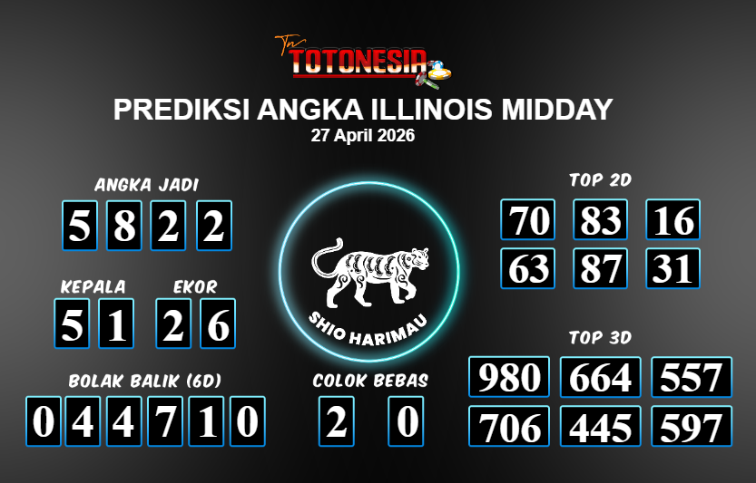 Prediksi ILLINOIS MIDDAY adalah perhitungan nomor togel unggulan dari agen suhu togel yang menyajikan angka prediksi paling akurat, sehingga memberikan banyak keuntungan saat bermain di pasar togel ILLINOIS MIDDAY . TotoNesia adalah prediksi dengan rasio kemenangan tertinggi di Indonesia. Sebagai penyedia togel yang dapat dipercaya, kami bertekad untuk memberikan ramalan togel yang handal dengan hadiah terbesarnya. Maka dari itu, jangan sampai terlewatkan prediksi bandar togel dengan hadiah terbanyak bet 100 dari pasar togel terbaik ILLINOIS MIDDAY Daftar sekarang juga di bandar.