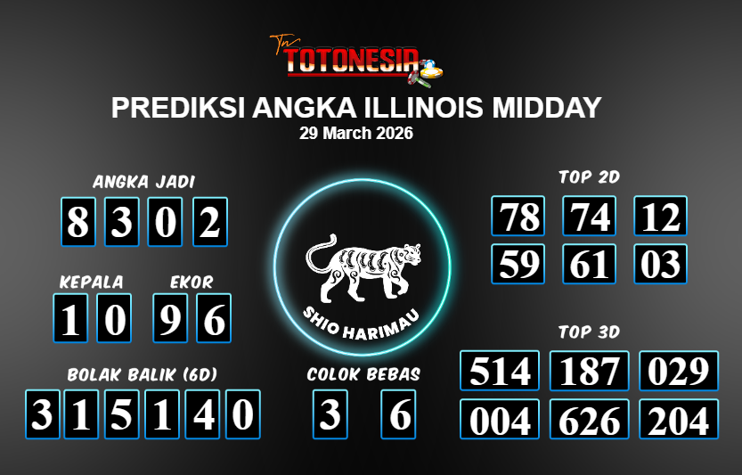 Prediksi ILLINOIS MIDDAY adalah perhitungan nomor togel unggulan dari agen suhu togel yang menyajikan angka prediksi paling akurat, sehingga memberikan banyak keuntungan saat bermain di pasar togel ILLINOIS MIDDAY . TotoNesia adalah prediksi dengan rasio kemenangan tertinggi di Indonesia. Sebagai penyedia togel yang dapat dipercaya, kami bertekad untuk memberikan ramalan togel yang handal dengan hadiah terbesarnya. Maka dari itu, jangan sampai terlewatkan prediksi bandar togel dengan hadiah terbanyak bet 100 dari pasar togel terbaik ILLINOIS MIDDAY Daftar sekarang juga di bandar.