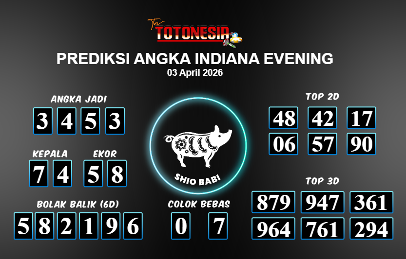 Toto Nesia : Bocoran Prediksi Togel INDIANA EVENING Tanggal 03 APRIL 2026