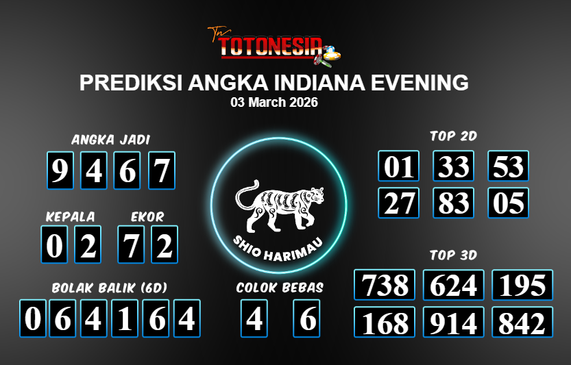 Toto Nesia : Bocoran Prediksi Togel INDIANA EVENING Tanggal 03 MARET 2026