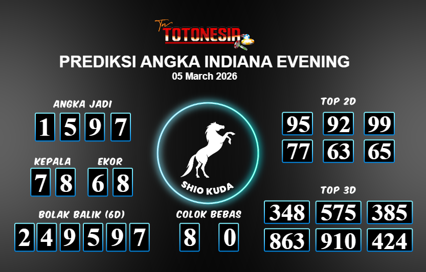 Prediksi INDIANA EVENING adalah perhitungan nomor togel unggulan dari agen suhu togel yang menyajikan angka prediksi paling akurat, sehingga memberikan banyak keuntungan saat bermain di pasar togel INDIANA EVENING . TotoNesia adalah prediksi dengan rasio kemenangan tertinggi di Indonesia. Sebagai penyedia togel yang dapat dipercaya, kami bertekad untuk memberikan ramalan togel yang handal dengan hadiah terbesarnya. Maka dari itu, jangan sampai terlewatkan prediksi bandar togel dengan hadiah terbanyak bet 100 dari pasar togel terbaik INDIANA EVENING Daftar sekarang juga di bandar.