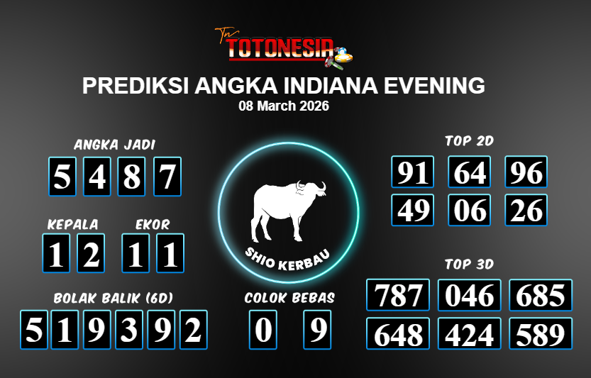 Prediksi INDIANA EVENING adalah perhitungan nomor togel unggulan dari agen suhu togel yang menyajikan angka prediksi paling akurat, sehingga memberikan banyak keuntungan saat bermain di pasar togel INDIANA EVENING . TotoNesia adalah prediksi dengan rasio kemenangan tertinggi di Indonesia. Sebagai penyedia togel yang dapat dipercaya, kami bertekad untuk memberikan ramalan togel yang handal dengan hadiah terbesarnya. Maka dari itu, jangan sampai terlewatkan prediksi bandar togel dengan hadiah terbanyak bet 100 dari pasar togel terbaik INDIANA EVENING Daftar sekarang juga di bandar.