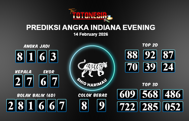 Toto Nesia : Bocoran Prediksi Togel INDIANA EVENING Tanggal 14 FEBUARI 2026