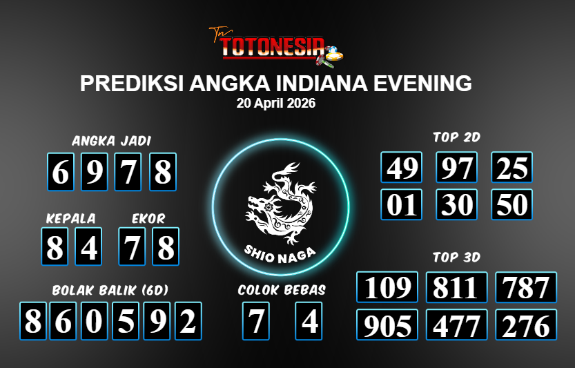 Toto Nesia : Bocoran Prediksi Togel INDIANA EVENING Tanggal 20 APRIL 2026