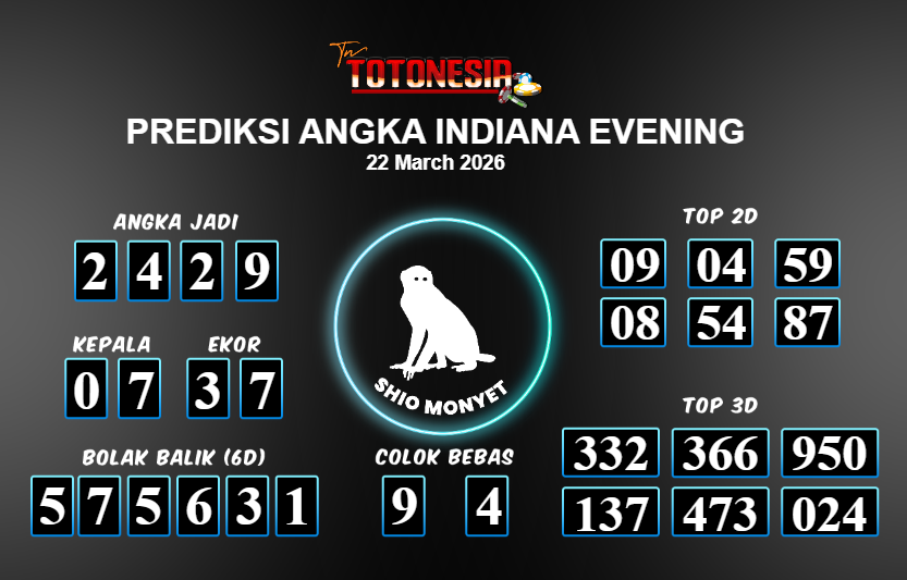 Prediksi INDIANA EVENING adalah perhitungan nomor togel unggulan dari agen suhu togel yang menyajikan angka prediksi paling akurat, sehingga memberikan banyak keuntungan saat bermain di pasar togel INDIANA EVENING . TotoNesia adalah prediksi dengan rasio kemenangan tertinggi di Indonesia. Sebagai penyedia togel yang dapat dipercaya, kami bertekad untuk memberikan ramalan togel yang handal dengan hadiah terbesarnya. Maka dari itu, jangan sampai terlewatkan prediksi bandar togel dengan hadiah terbanyak bet 100 dari pasar togel terbaik INDIANA EVENING Daftar sekarang juga di bandar.