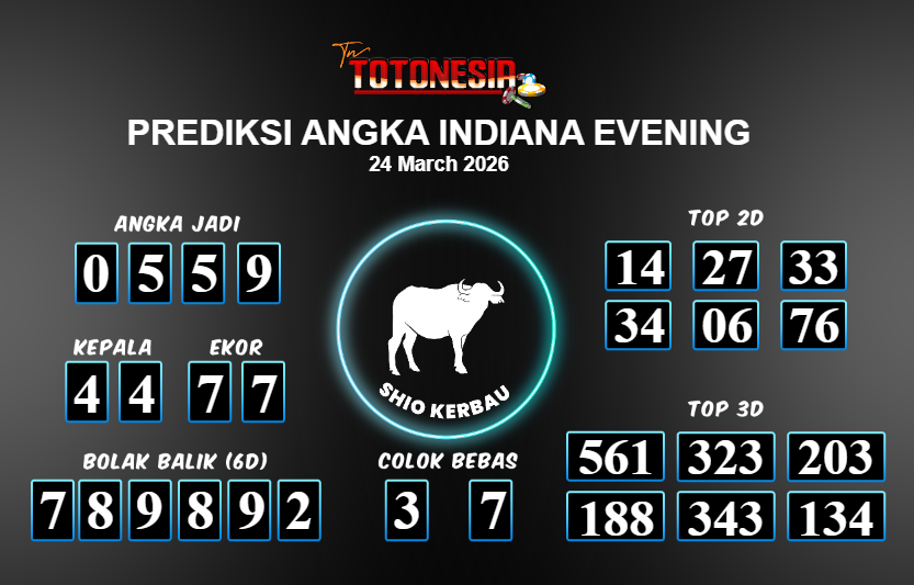 Toto Nesia : Bocoran Prediksi Togel INDIANA EVENING Tanggal 24 MARET 2026