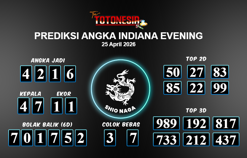 Prediksi INDIANA EVENING adalah perhitungan nomor togel unggulan dari agen suhu togel yang menyajikan angka prediksi paling akurat, sehingga memberikan banyak keuntungan saat bermain di pasar togel INDIANA EVENING . TotoNesia adalah prediksi dengan rasio kemenangan tertinggi di Indonesia. Sebagai penyedia togel yang dapat dipercaya, kami bertekad untuk memberikan ramalan togel yang handal dengan hadiah terbesarnya. Maka dari itu, jangan sampai terlewatkan prediksi bandar togel dengan hadiah terbanyak bet 100 dari pasar togel terbaik INDIANA EVENING Daftar sekarang juga di bandar.