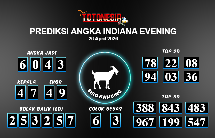 Toto Nesia : Bocoran Prediksi Togel INDIANA EVENING Tanggal 26 APRIL 2026