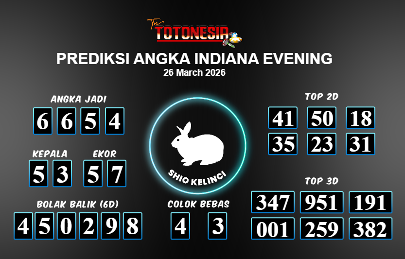 Toto Nesia : Bocoran Prediksi Togel INDIANA EVENING Tanggal 26 MARET 2026