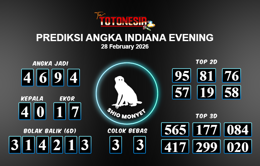 Toto Nesia : Bocoran Prediksi Togel INDIANA EVENING Tanggal 28 FEBUARI 2026
