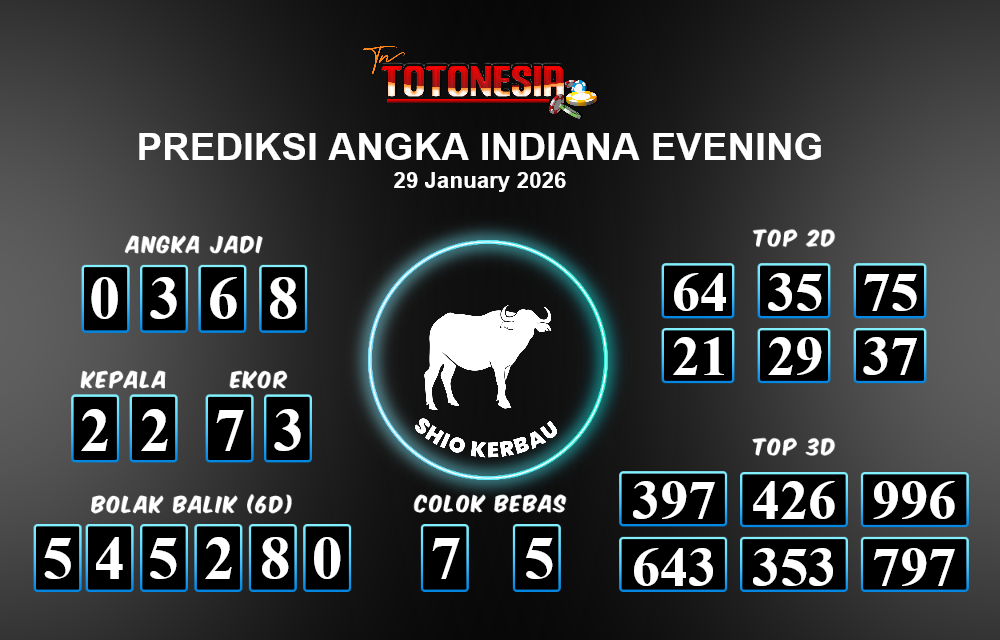 Toto Nesia : Bocoran Prediksi Togel INDIANA EVENING Tanggal 29 JANUARI 2026