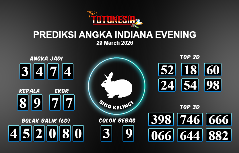 Prediksi INDIANA EVENING adalah perhitungan nomor togel unggulan dari agen suhu togel yang menyajikan angka prediksi paling akurat, sehingga memberikan banyak keuntungan saat bermain di pasar togel INDIANA EVENING . TotoNesia adalah prediksi dengan rasio kemenangan tertinggi di Indonesia. Sebagai penyedia togel yang dapat dipercaya, kami bertekad untuk memberikan ramalan togel yang handal dengan hadiah terbesarnya. Maka dari itu, jangan sampai terlewatkan prediksi bandar togel dengan hadiah terbanyak bet 100 dari pasar togel terbaik INDIANA EVENING Daftar sekarang juga di bandar.